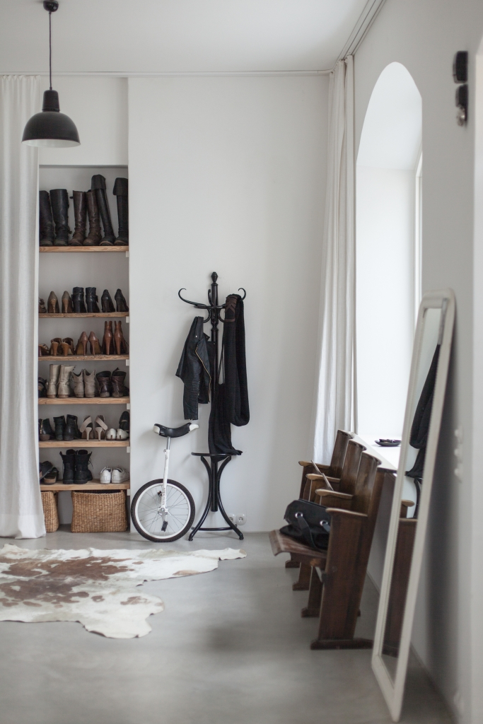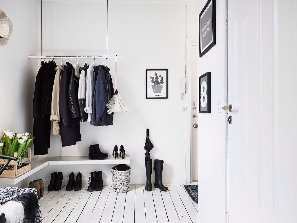 قاعة حديثة مع أرفف مفتوحة للأحذية