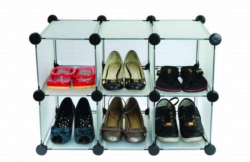الخيار الأكثر بأسعار معقولة وغير مكلفة للجميع. عيب التصميم هو قوة صغيرة ، لذلك فمن المستحسن وضع أحذية خفيفة والصفائح في الأجزاء العلوية ، ووضع أحذية ثقيلة أسفل.
