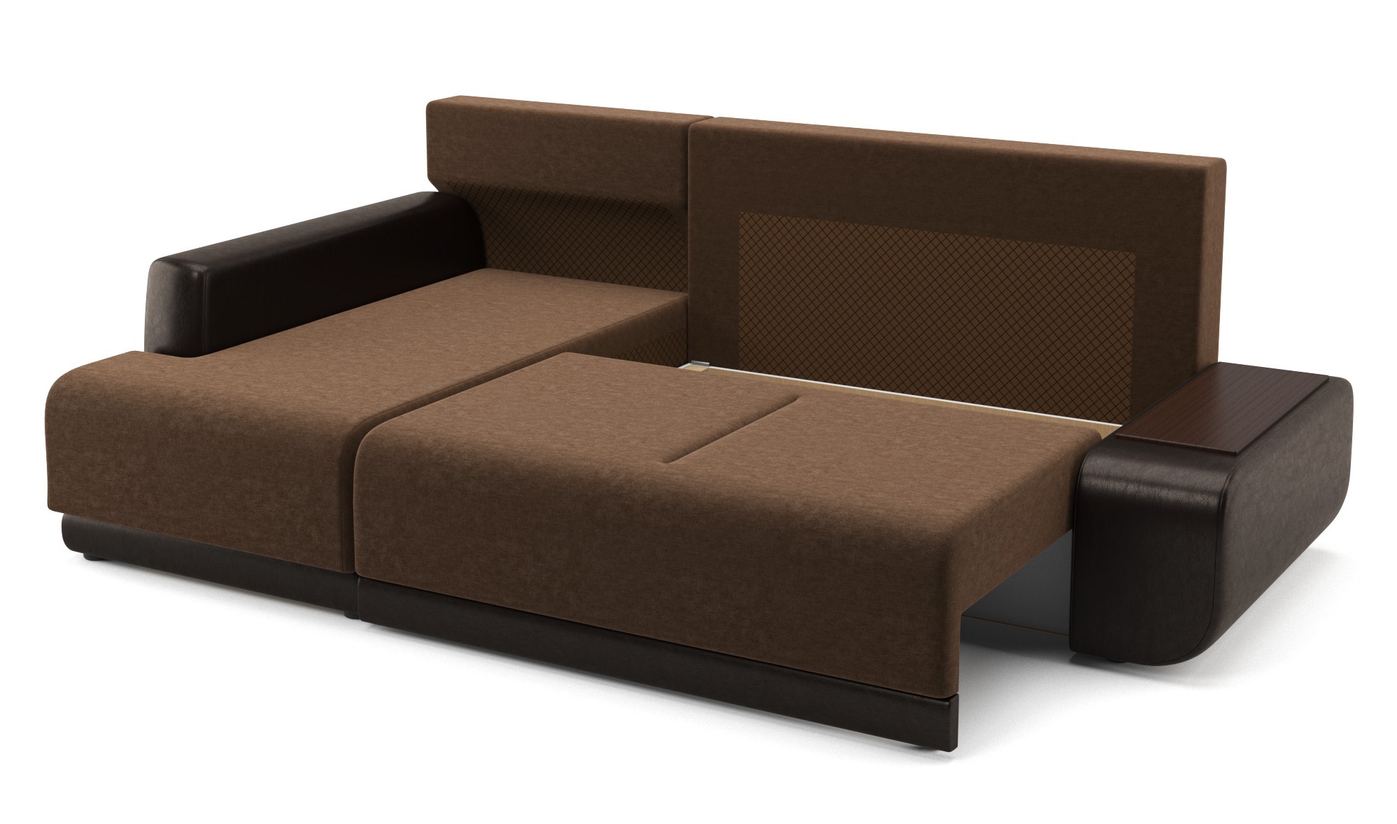يتم سحب الظهر والمقعد للأمام ، ويتحولان إلى رصيف كامل.