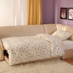 أريكة المدمجة في الشقة لا تبدو ضخمة ، ولكن أنيق. ومع ذلك ، نظرًا لصغر حجمها ، فإن سعر المنتج منخفض جدًا.