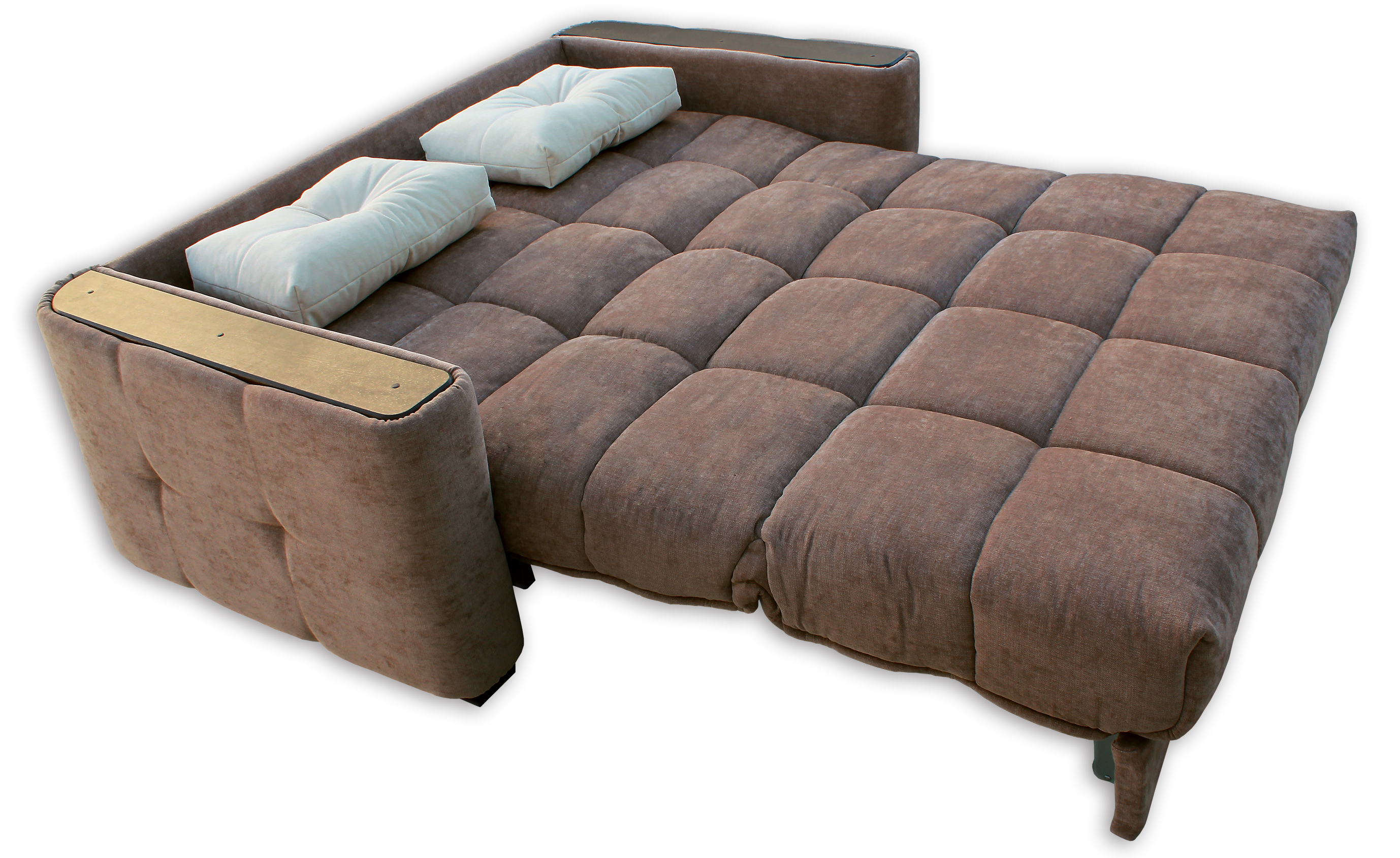 في النهار ، يجلس عليها ، يمكنك القراءة ومشاهدة التلفزيون. في الليل ، يتحول إلى سرير أنيق.