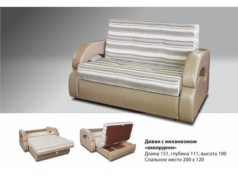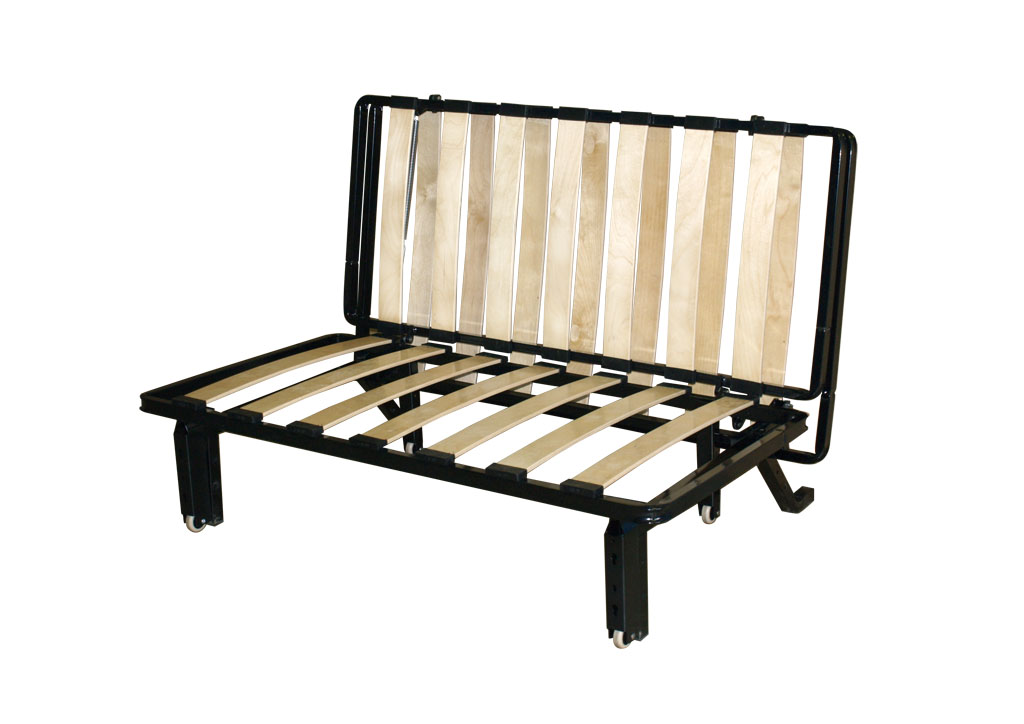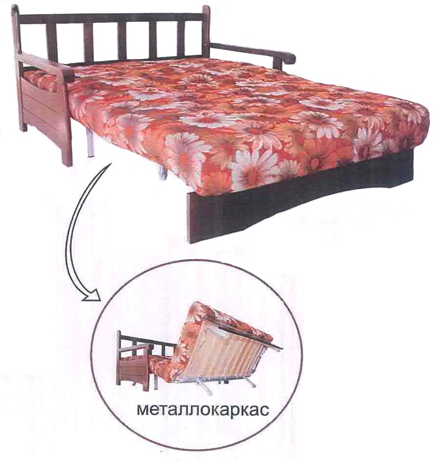 مبدأ آلية "الأكورديون" - تقليد لحركة الأكورديون ، سهل الطي - يتكشف. يتكون الهيكل من ثلاثة أجزاء ، مصنوعة من الفولاذ ، لها دروع خشبية. يمكن أن تكون الأريكة ذات الإطار المعدني قابلة للطي ، وهي مريحة عند الحركة.