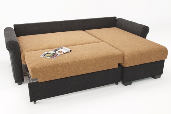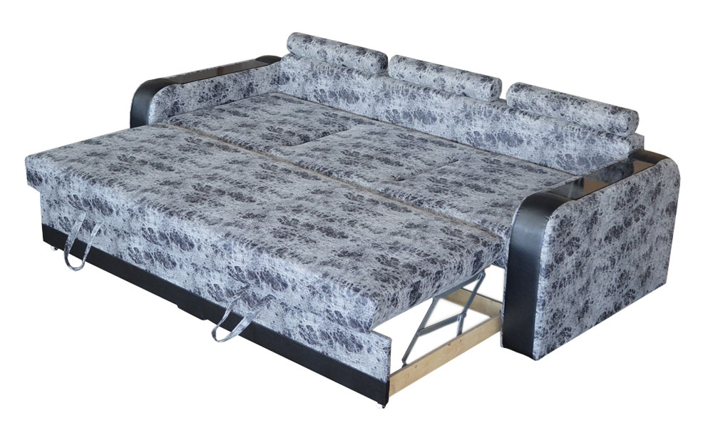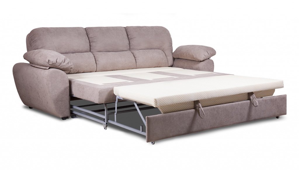 هذه صوفا مريحة وواسعة النطاق لها آلية تحول بسيطة تجعل عملية تحولها إلى سرير مريح كامل أقل صعوبة. عملية الكشف بسيطة للغاية - سيحتاج المالك فقط إلى سحب النصف السفلي ، الذي يظهر ، كما كان ، الشعور بالخارج ويمسك بزوج من المقابض.