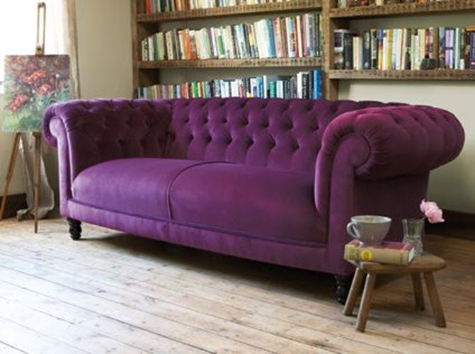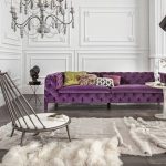 | صوفا بلون أرجواني عميق | لن تلعب دورًا رئيسيًا في التكوين ، ولكنها ستصبح الخلفية. إذا كنت تريد السطوع وقليلًا من جو بيت الدمية ، فالمزيج من المنتج مع أشياء من لوحة صفراء أو وردية أو أرجوانية. |