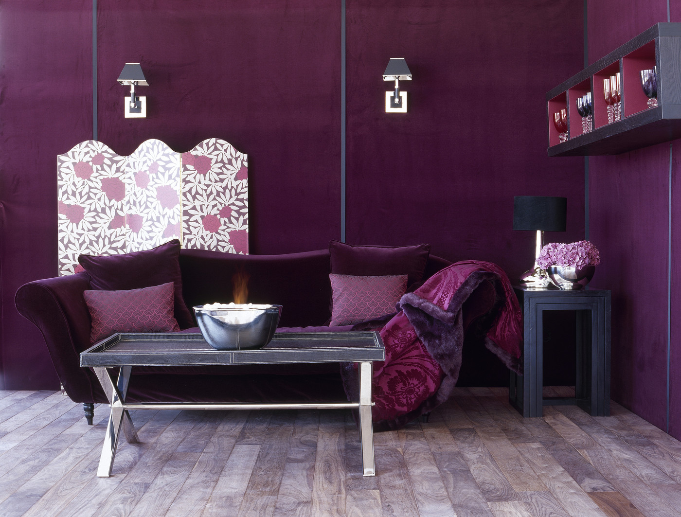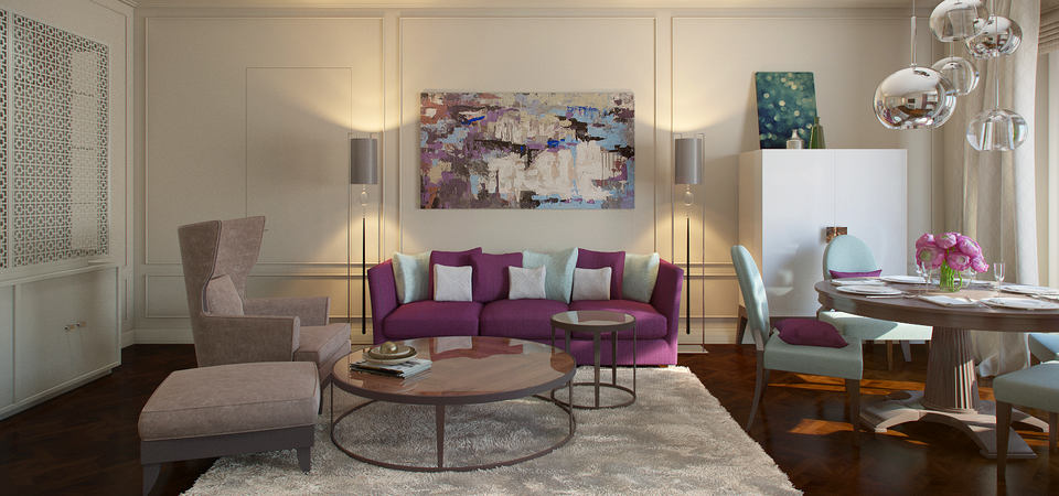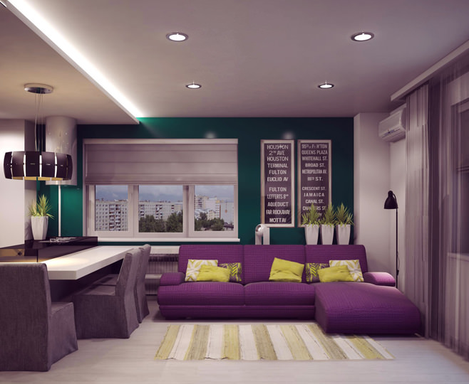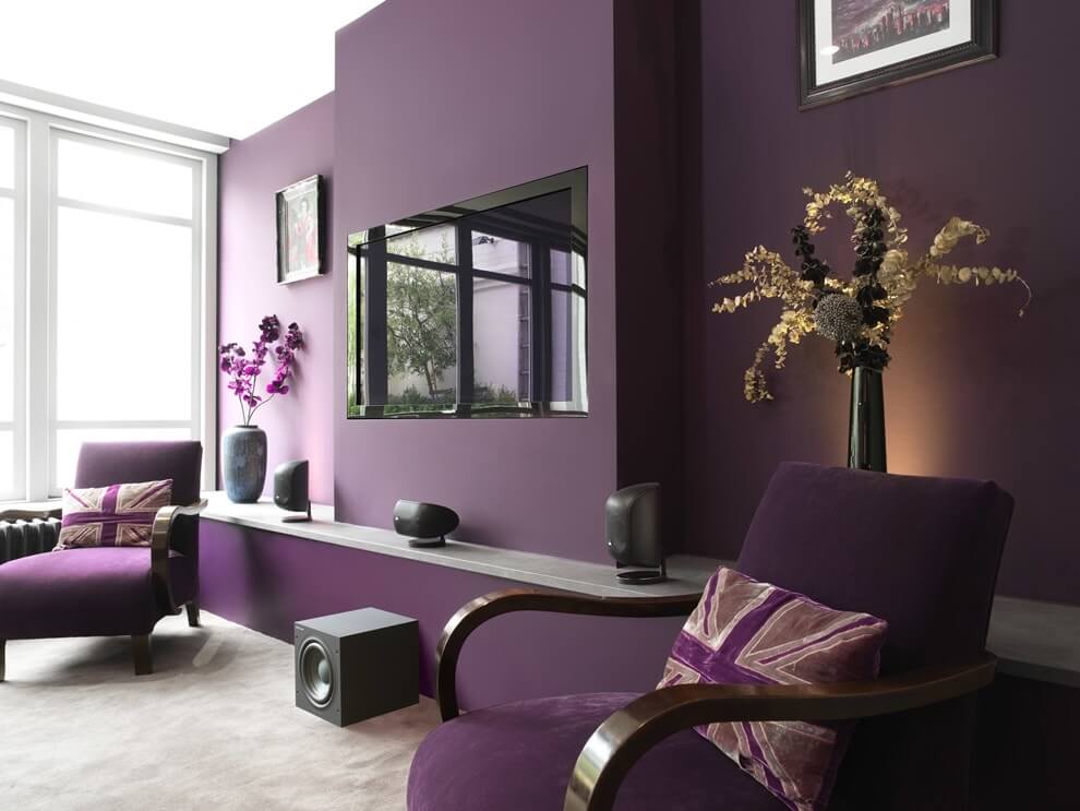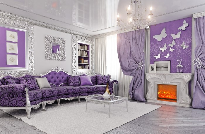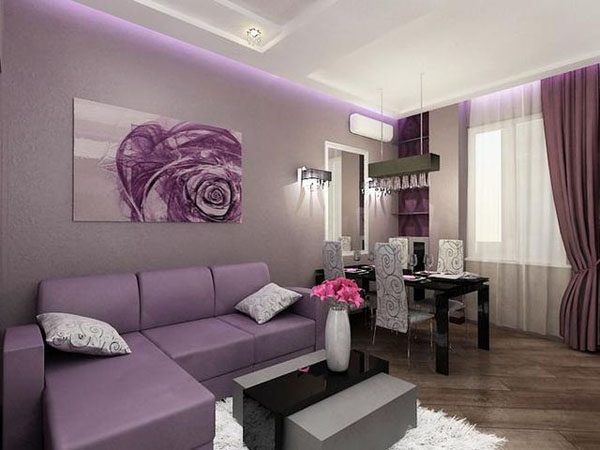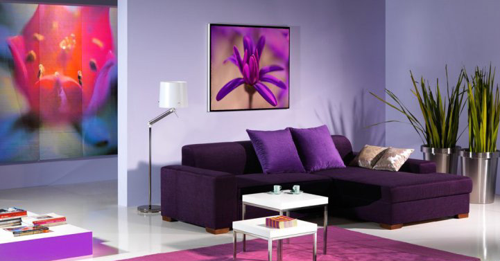الأرجواني لديه طاقة قوية.عند اختياره كنوع مختلف من لون الأريكة أو العناصر الزخرفية ، من المهم مراعاة ذلك واستخدامه بحذر شديد.