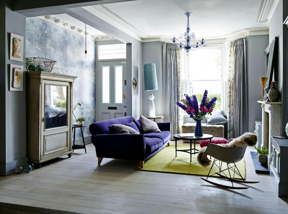 أريكة بنفسجية لغرفة معيشة مريحة بأسلوب كلاسيكي