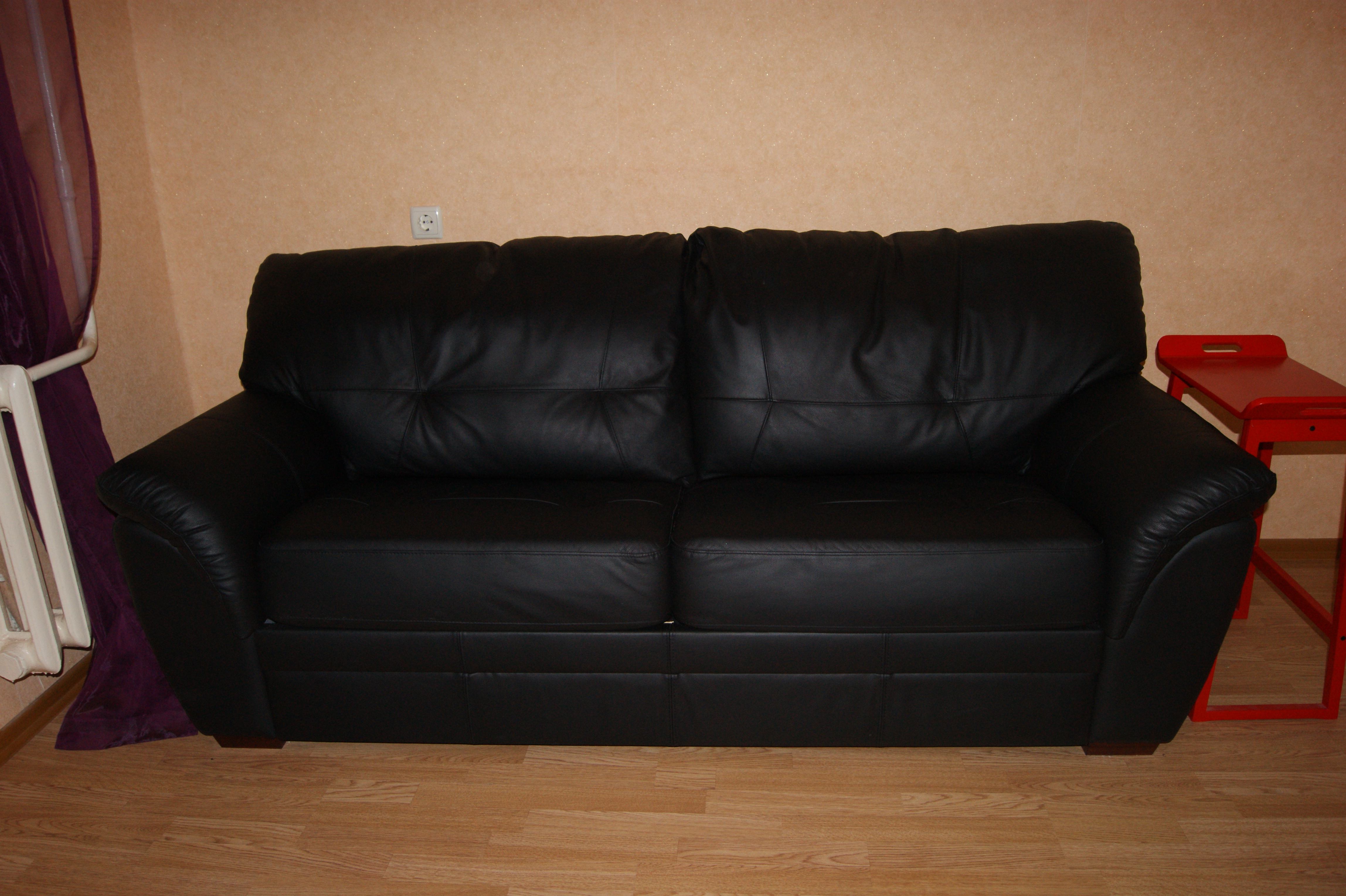 ميزة غير سارة للأريكة الجلدية الداكنة هي حساسية التنظيف.