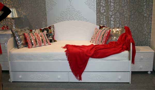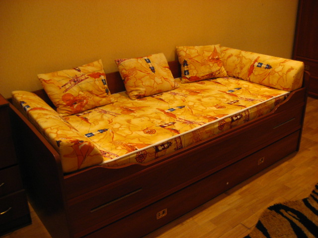 لا ينبغي أن تكون المفروشات ذات العلامات التجارية للغاية. المراهقون نشيطون للغاية ، لذلك غالبًا ما تصبح مواد التنجيد قذرة أثناء الاستخدام. يجب دمج نظام الألوان لتنجيد الأثاث مع التدرج الرئيسي للغرفة الداخلية.من الضروري أن تشرح للمراهق أن الألوان الزاهية البراقة تسبب التعب السريع والتهيج. الألوان الداكنة جدا في الداخل يمكن أن تسبب الاكتئاب. في النهاية ، يجب أن يكون اختيار اللون فرديًا. سرير أريكة لصبي عادة ما تختار الألوان المعتمة. يمكن اختيار سرير الأريكة لفتاة مراهقة بألوان زاهية بألوان عصرية.