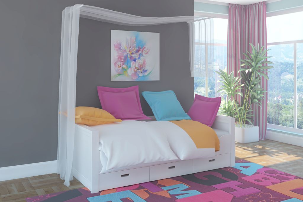 سوف تتناسب أسرّة الأريكة الجميلة في سن المراهقة مع آلية النقر في الغرفة المريحة لفتاة مراهقة.