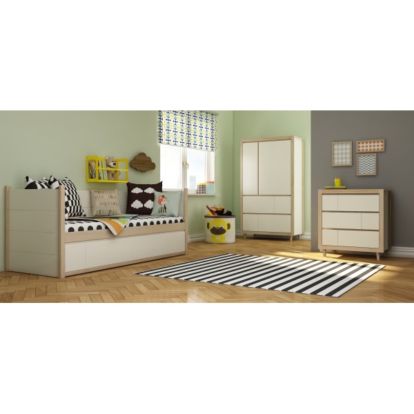 تم تجهيز جميع أسرّة الأريكة للمراهق بأدراج ، حيث تتم إزالة الغسيل بعد النوم.