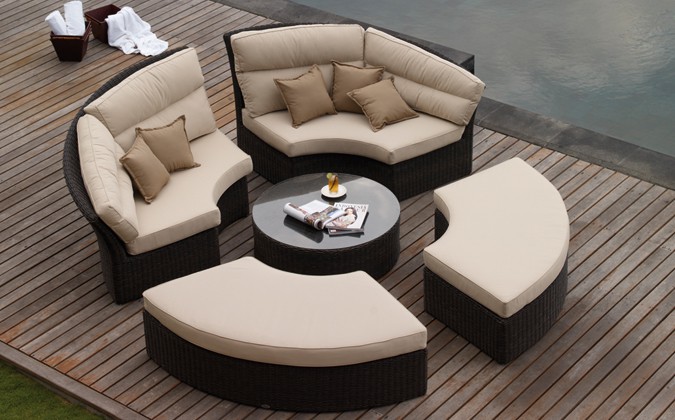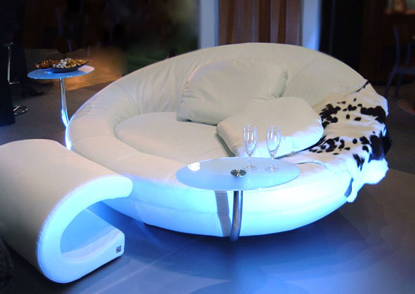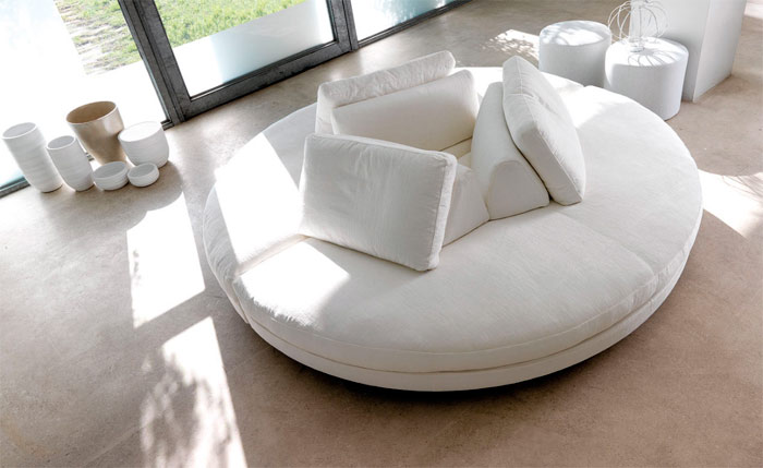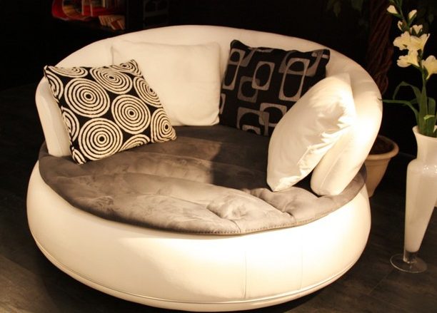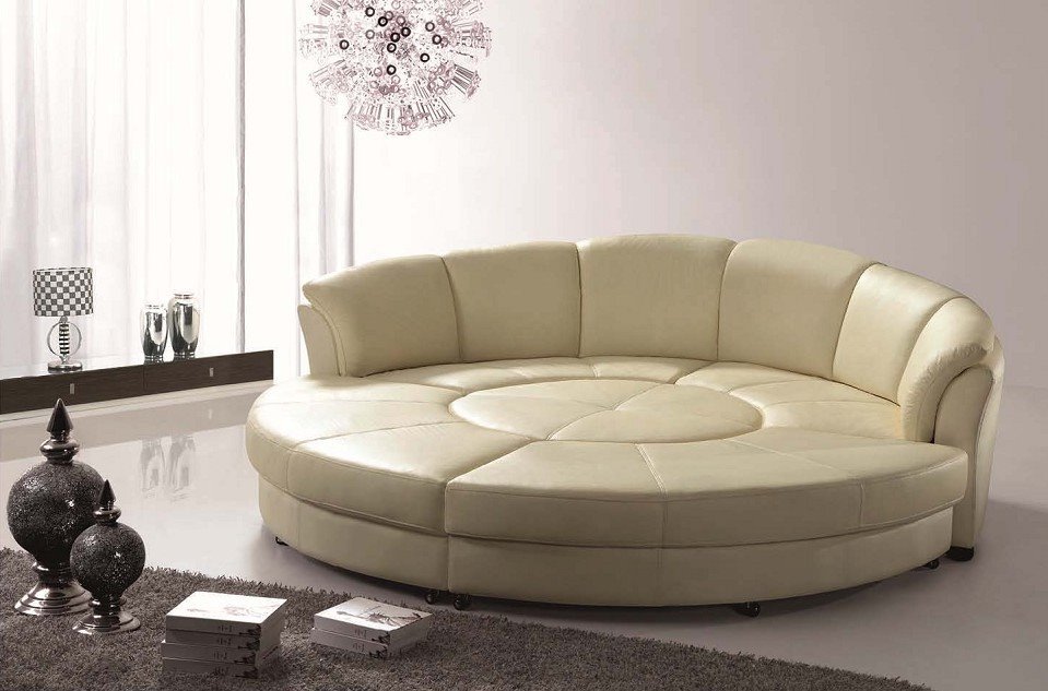 الأثاث المستدير الشكل شائع. يمكن وضعها في غرفة المعيشة وغرفة النوم. سرير أريكة مستديرة مريحة للغاية للعمل. ويؤكد تماما ويكمل الداخلية الأصلية.