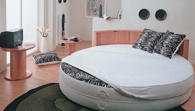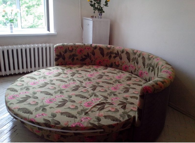 - قطر السرير أريكة مستديرة يبدأ من 2 متر. يتيح لك ذلك النوم عليه بكل وسائل الراحة ، بغض النظر عن الاتجاه الذي تكمن فيه. على وجه الخصوص ، هذه ميزة إضافية لأنصار فنغ شوي.
