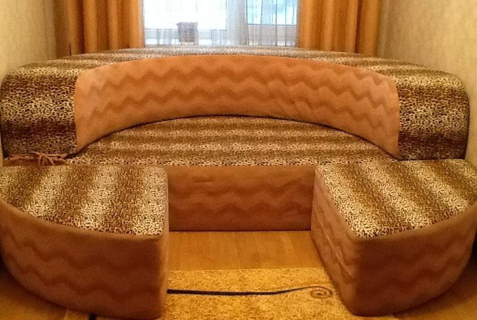 لقد لوحظ بالفعل أن سرير الأريكة المستدير كبير الحجم إلى حد ما. هذا هو زائد وعيوب النموذج. يبلغ متوسط الحجم 2 متر وطوله 2.40. وهذا يسمح للناس طويل القامة للجلوس بشكل مريح على السرير والنوم جيدا. إذا كنت من محبي Feng Shui ، فإن هذا التصميم سيسمح لك باتخاذ الموقف الصحيح للنوم. لكن نموذجًا كبيرًا سيمتص المساحة ، وفي غرفة صغيرة سيشغل المنطقة بأكملها تقريبًا.