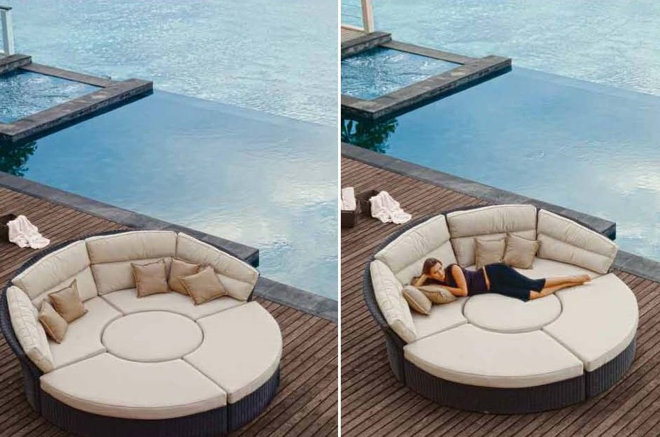 اليوم ، هناك العديد من أنواع الأرائك المستديرة. عدم وجود زوايا يعزز راحة قطعة الأثاث. يمكن أن تكون أريكة محدبة ، مقعرة. هناك نماذج تشبه رمز yin yang.