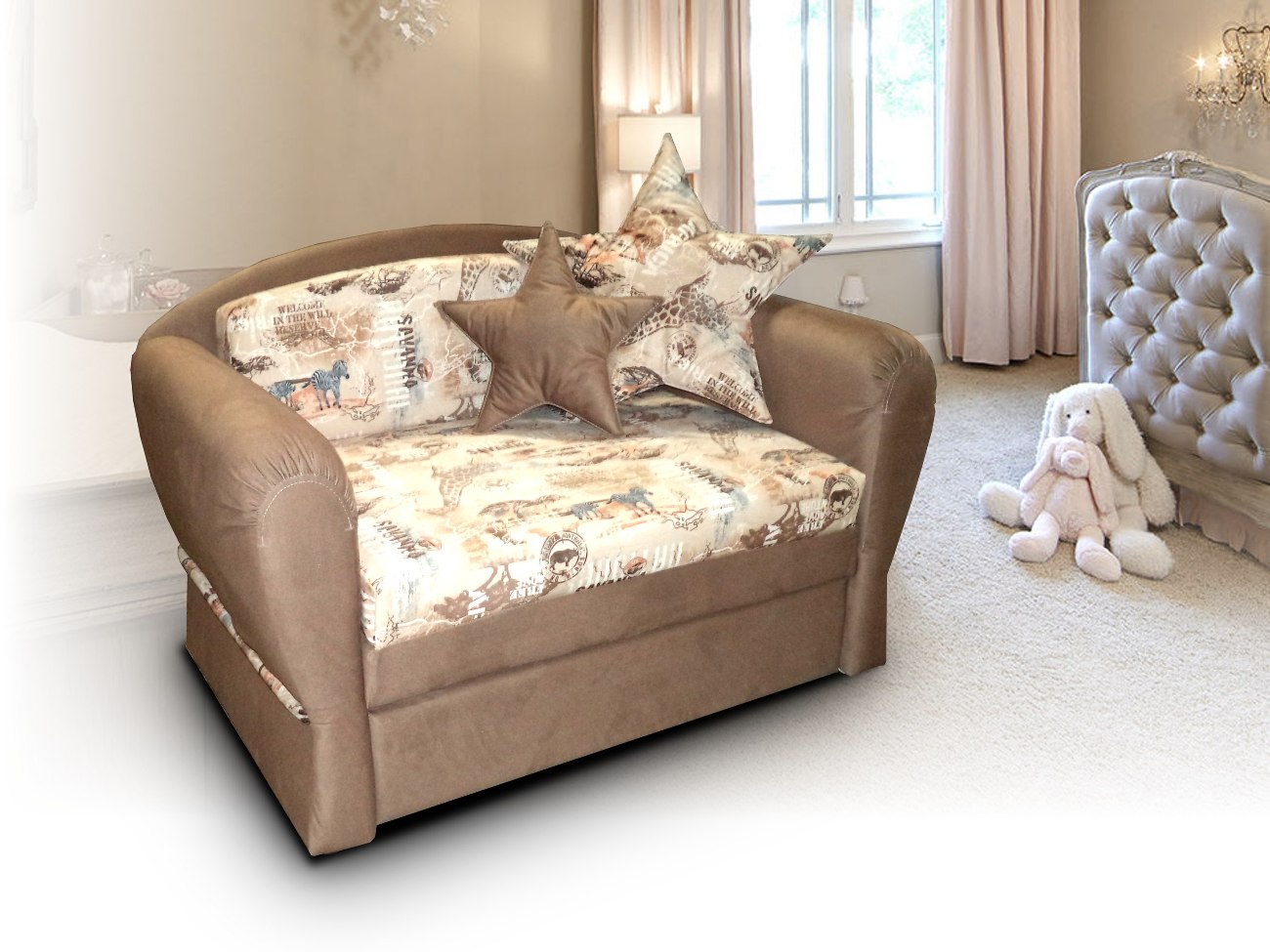نظرًا لحقيقة أن الأطفال ينموون بسرعة ، فإن مصنعي الأرائك يقدمون نماذج قابلة للطي رخيصة الثمن مع إطارات خشبية وملء رغاوي PU. آليات vykatnye شعبية قابلة للطي والمنتجات مع مقصورات للكتان. الحشو الطبيعية وكتل الربيع تحتوي على النماذج التالية من الأرائك للأطفال: