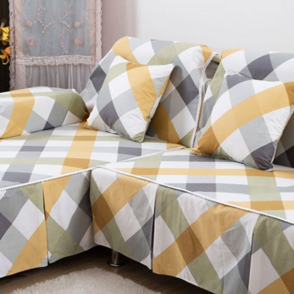 يمكن أن تكون الأغطية على الأريكة الزاوية أحادية اللون ولونًا.