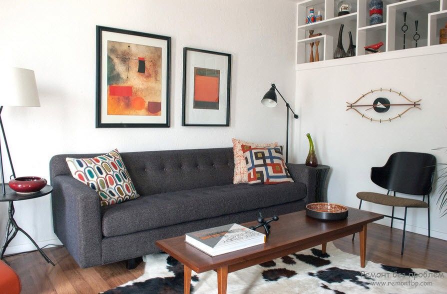 على ملاحظة! تسير الأريكة الرمادية بشكل جيد مع السجادة الأرضية ذات الألوان الفاتحة. لكن هذا ليس كل شيء! صوفا رمادية تبدو جيدة بألوان بنية داكنة مع إضاءة ناعمة ضعيفة. إنها مناسبة تمامًا لخلق جو من الراحة المنزلية.