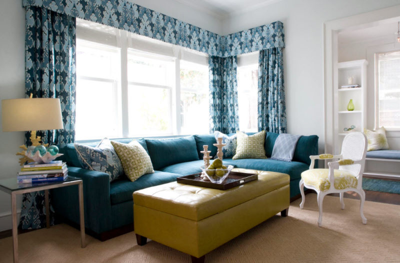 من الأفضل التقاط الستائر وفقًا للظلال الأخرى غير المهيمنة في الغرفة.