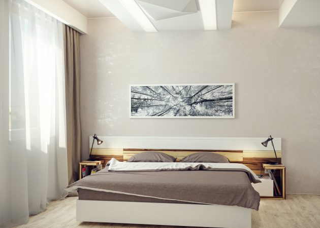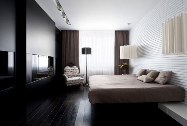 إذا لم تكن غرفة النوم صغيرة جدًا ، فمن الأفضل اتخاذ قرار لصالح المواد الكثيفة.