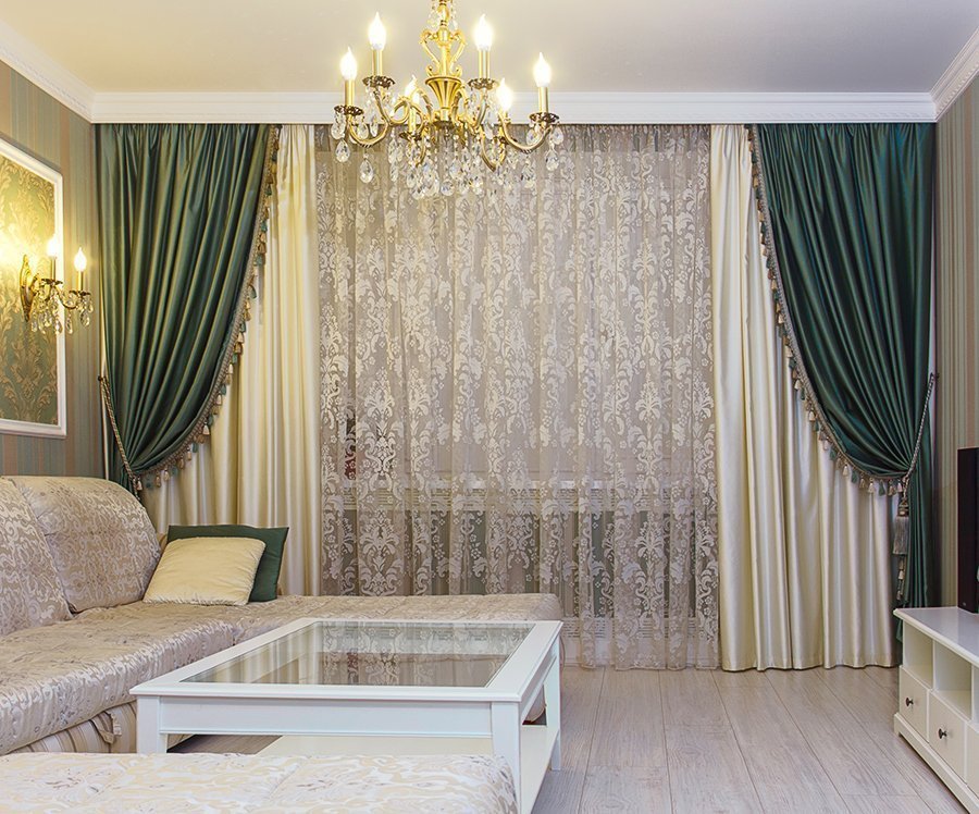 إذا كانت غرفة المعيشة كبيرة الحجم ، فهي تحتوي على نوافذ ذات أبعاد ، ثم بالإضافة إلى ذلك ، يمكن تركيب مجموعة من الستائر متعددة الطبقات مع لامبريكين. مع مساحة صغيرة من الغرفة ، يجب إعطاء الأفضلية للألوان الفاتحة من القماش. عرض أمثلة من الستائر الأنيقة يمكن أن تكون في الصورة.