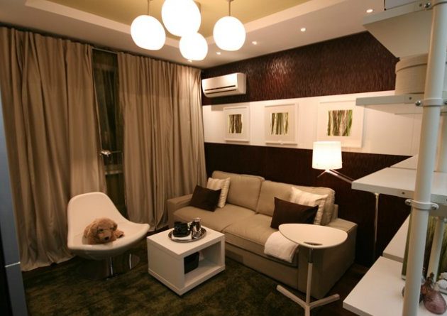 من الممكن جعل الغرفة أكثر بمساعدة مجموعة من الألوان الفاتحة للديكور من المنسوجات.