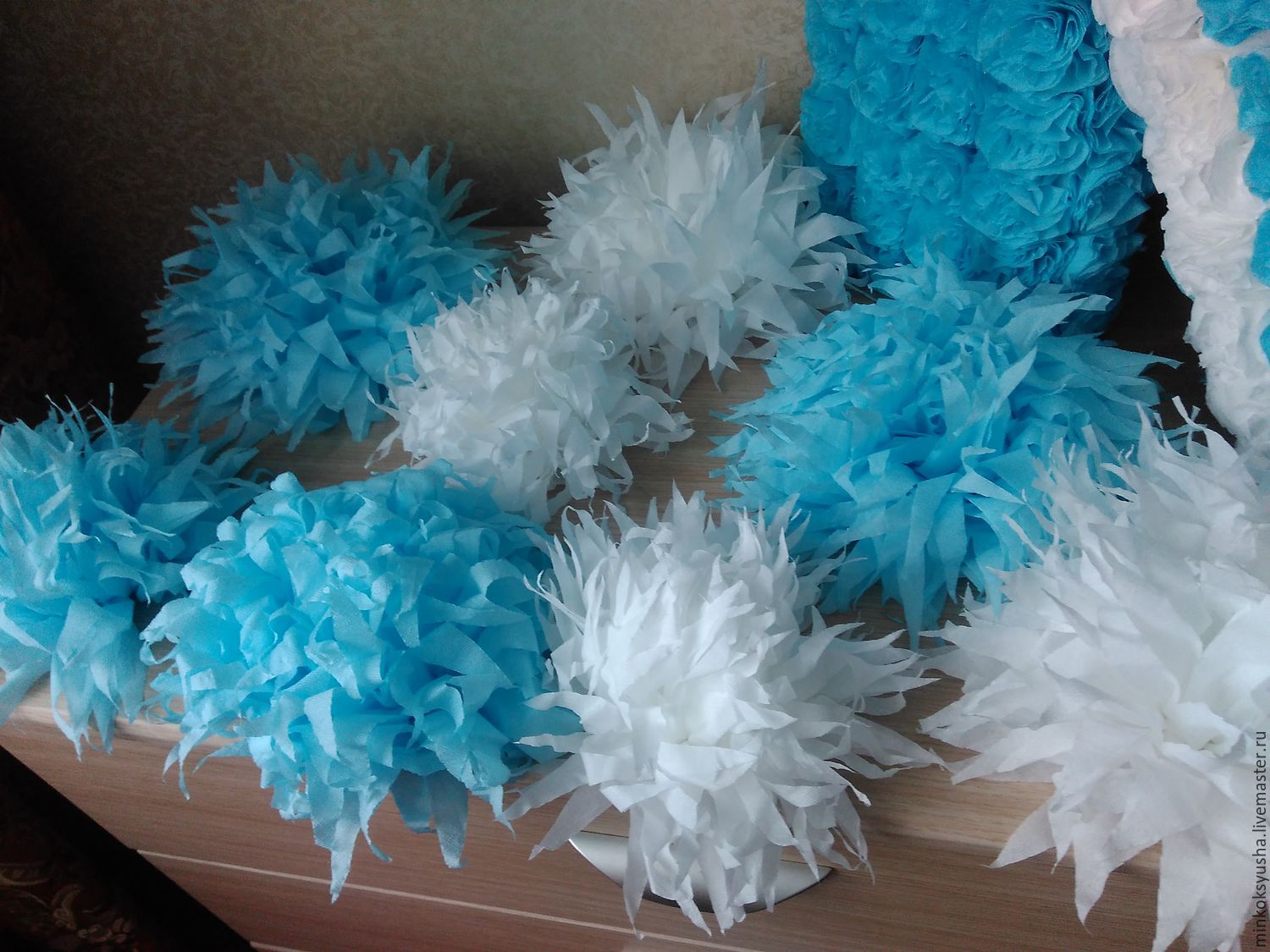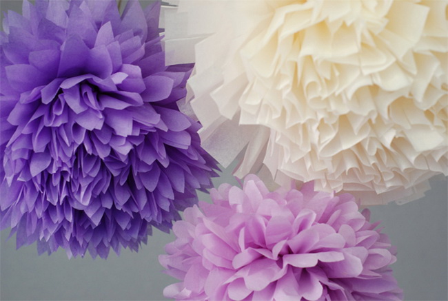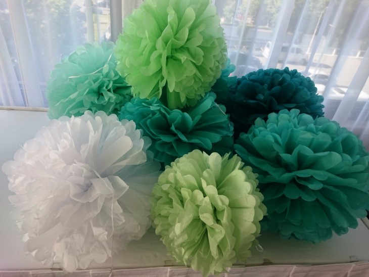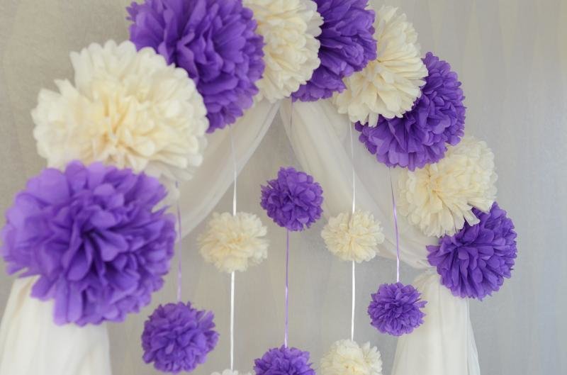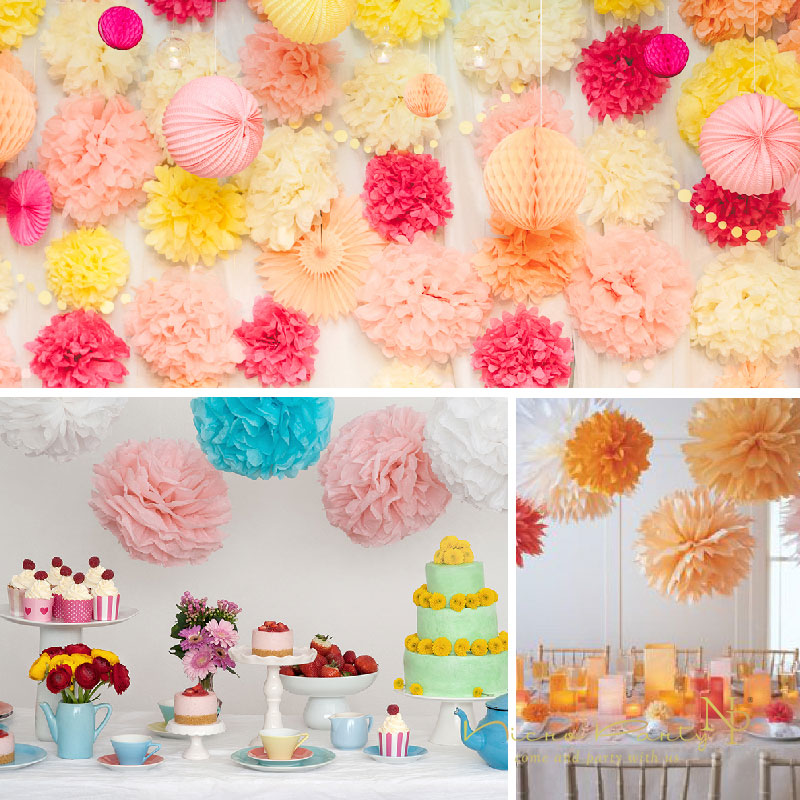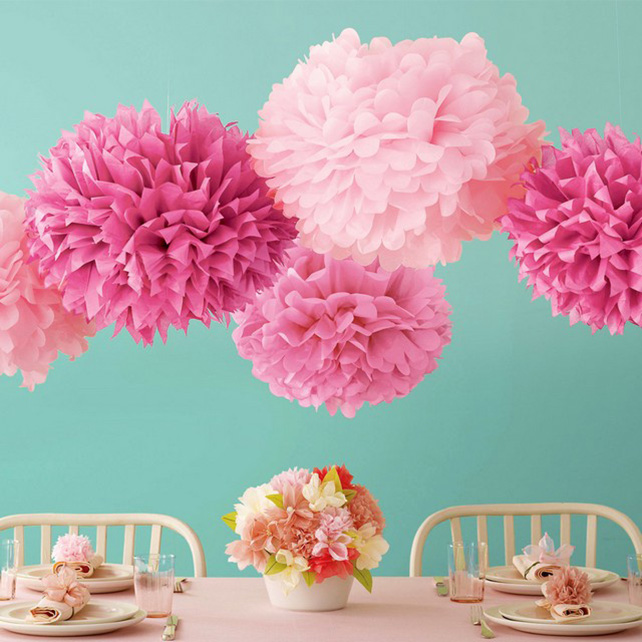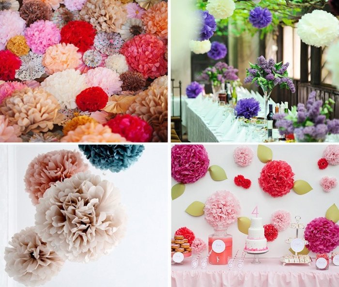 يمكن استخدام كرات الأنسجة في تصميم قاعات التجميع والولائم ، والتي تكتسب نكهة خاصة. كرات مناديل - حساسة ، متجدد الهواء ، "تسليط الضوء" في تصميم احتفالي.