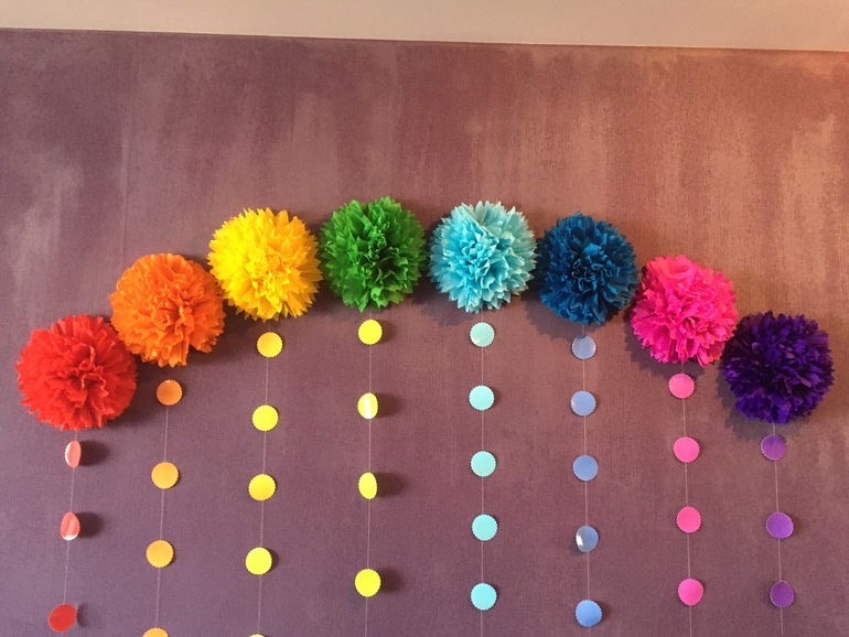 - من الكرات الورقية يمكنك صنع حلقات متعددة الألوان ، زخرفة متتالية ، مزينة بإكسسوارات أخرى.