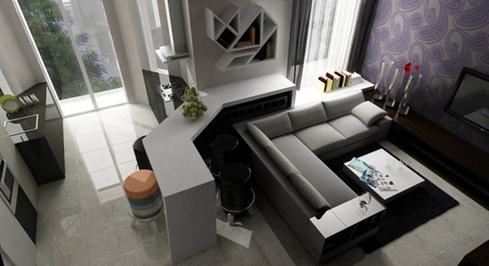 تصميم غرفة صغيرة (12 M2) مع أريكة.