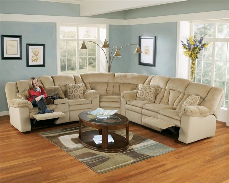 تحتوي أريكة الزاوية على أكبر الأبعاد نظرًا لشكلها وهي مناسبة للغرفة الفسيحة فقط.