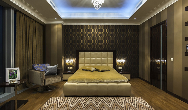 يمكن التأكيد على أجواء أنيقة راقية باستخدام الشمعدانات الفاخرة فوق السرير في غرفة النوم.
