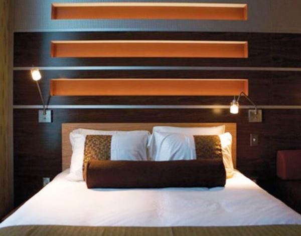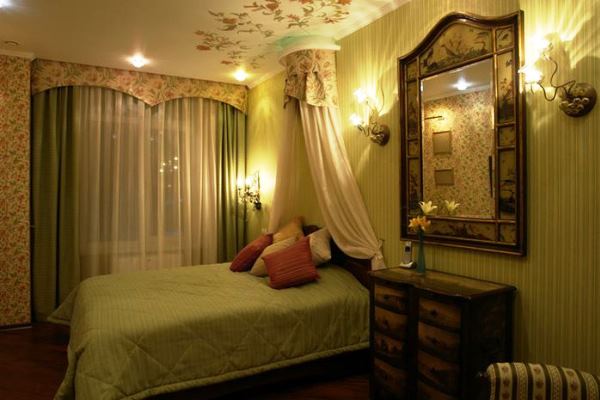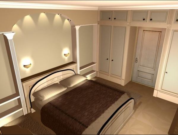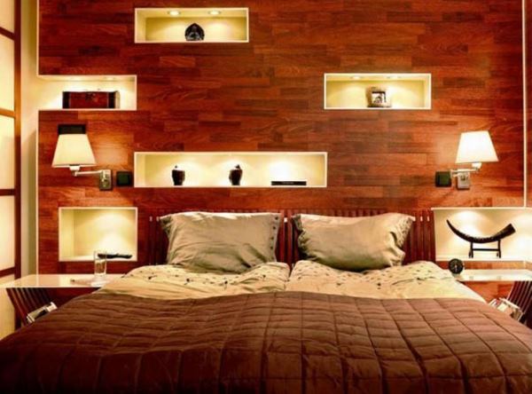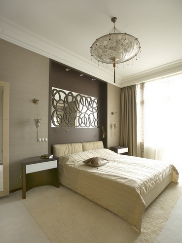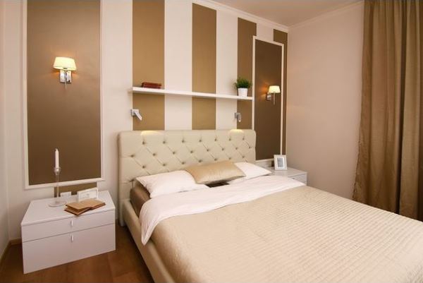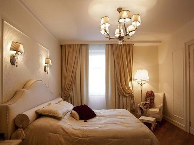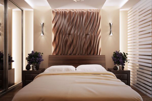 - من المهم جدًا أن يكون الضوء موحدًا. إذا كان السرير في الزاوية البعيدة ، فأنت بحاجة إلى وضع مصابيح بالقرب منه أو أعلى طاولة السرير. يمكنك أيضًا تثبيتها أمام مرآة تعكس الضوء وتوزعه بشكل متساوٍ.