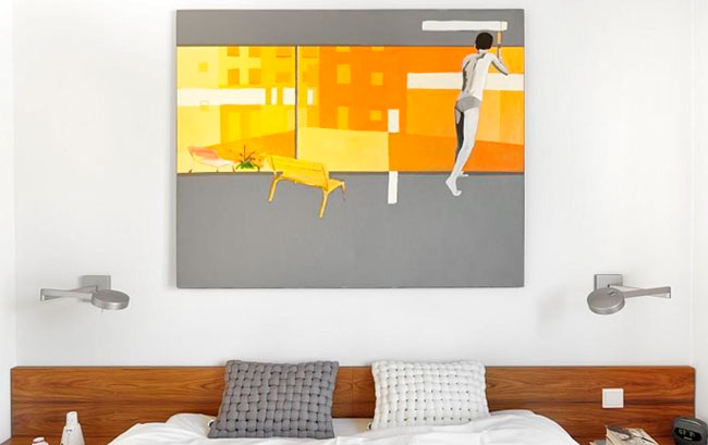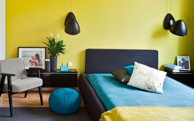 يمكن أن تكون الشمعدانات الموجودة فوق السرير في غرفة النوم ذات لون متباين فيما يتعلق بالديكور وغيرها من الأشياء في الغرفة.