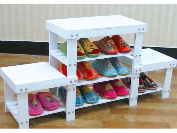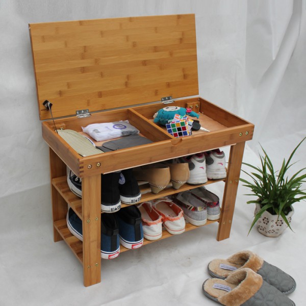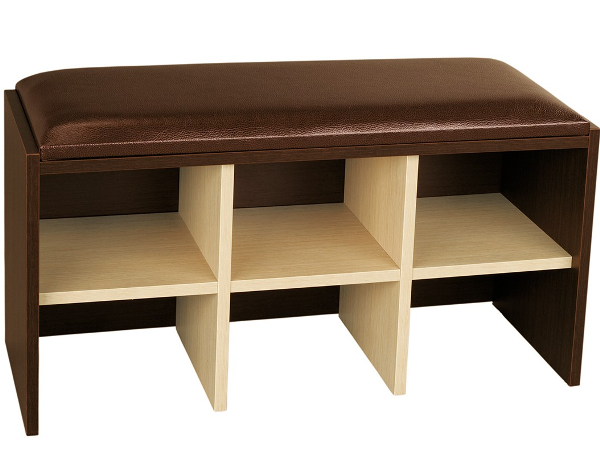 قد يكون لصندوق الأحذية المغلقة تصميم خزانة مع أرفف أو خزائن مع أبواب. في هذا الشكل البناء للأحذية الشعبية مع مقعد.