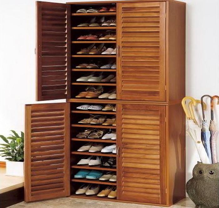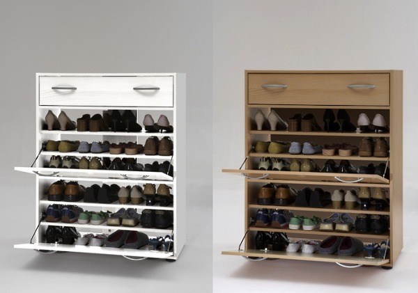خزانة أحذية بيتال مع أدلة مثالية للمساحات الصغيرة ، لأنها صغيرة وعملية. المنتج سهل الاستخدام والتصنيع. لمزيد من أقسام البناء مع أدلة ، يظهر شيء أكثر رحيب. في الوقت نفسه ، لا يستطيع صانع الأحذية وضع أحذية عالية على أرففه.
