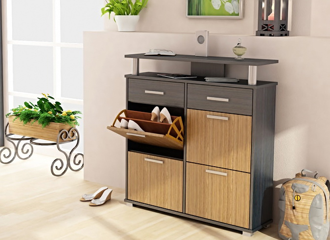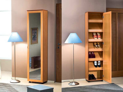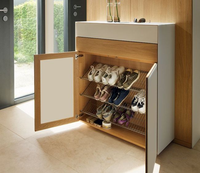 هذه الخزانات للأحذية هي قطعة ممتازة من الرواق الداخلي ، وتتيح لك أيضًا وضع أحذية على رفوف الخزانة.