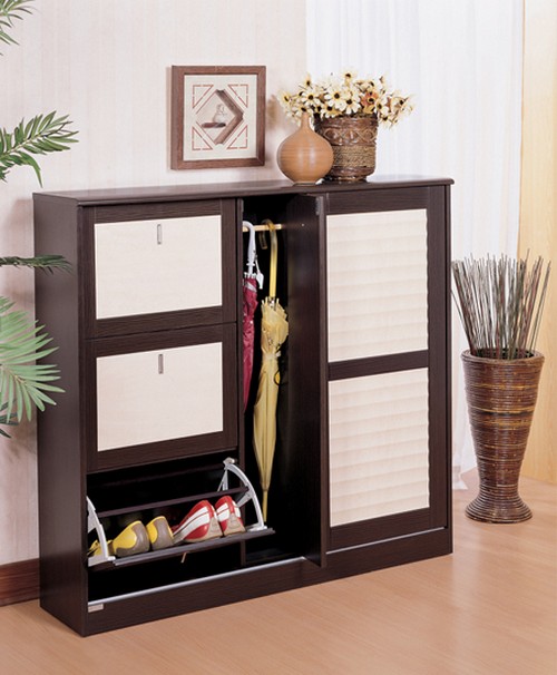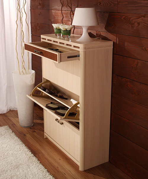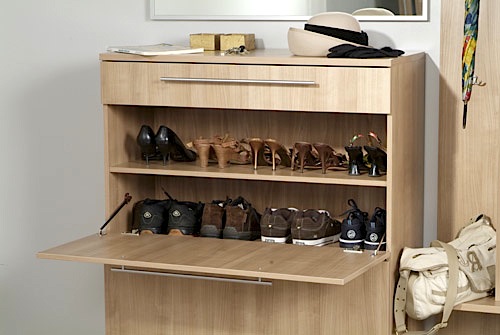 خزائن الأحذية مفتوحة ومغلقة ، ويمكن أن تكون مصنوعة من مواد مثل MDF ، اللوح الليفي ، الحبيبي.