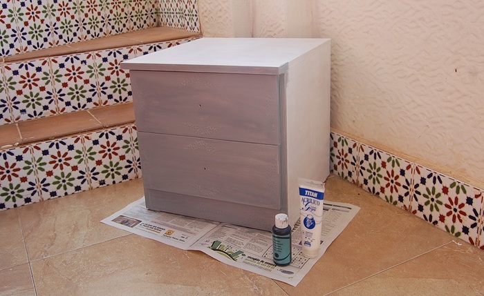 قبل أن تبدأ الديكور ، تحتاج إلى إعداد العناصر المحددة بشكل صحيح. بادئ ذي بدء ، من الضروري تنظيف السطح ، خاصة بالنسبة للأثاث القديم ، من الضروري إزالة طبقة الطلاء بالكامل. ثم يتم تغطية كل شيء مع التمهيدي ، بعد أن يجف ، يمكنك المتابعة لرسم الخلفية الرئيسية.