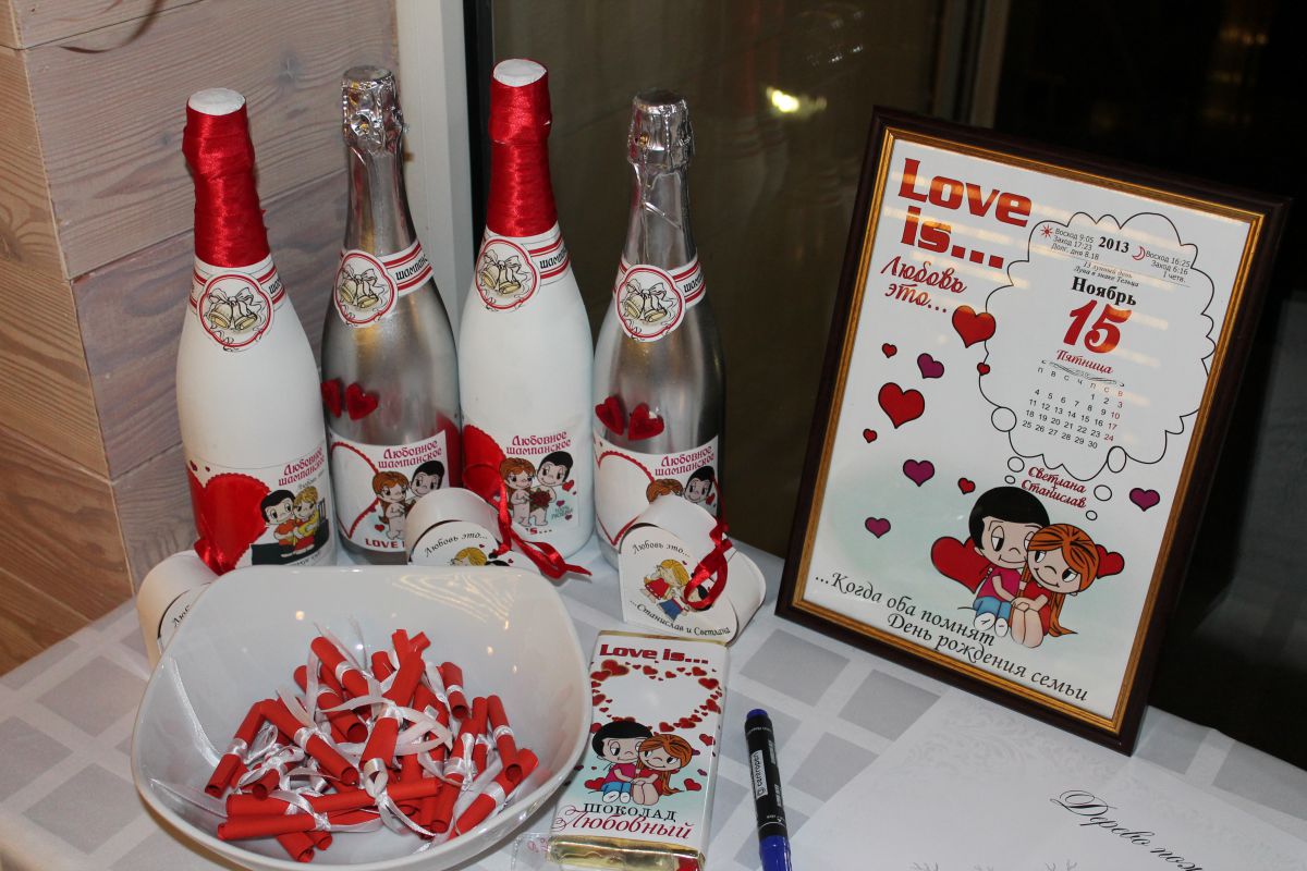 مجلس. عند اختيار مشروب كحولي ، يوصى بالتقاط زجاجات تشبه الخطوط العريضة لجسم الشباب. لتناسب العريس ، حاويات السوائب واسعة ، للعروس - ضيق ، مع رقبة ممدود.