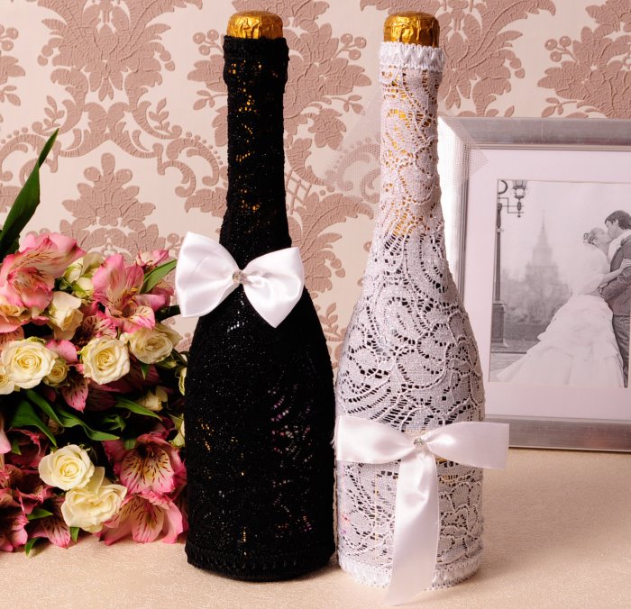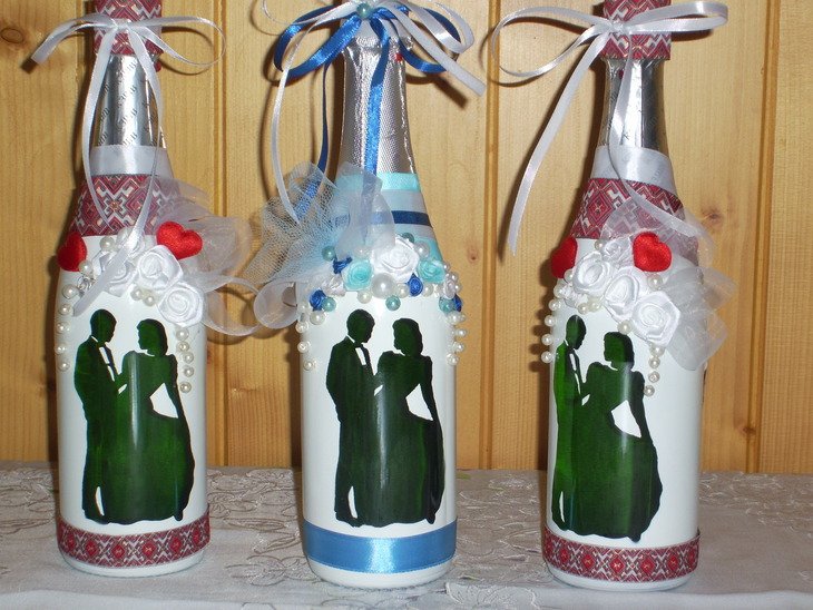 لا توجد متطلبات موحدة حول كيفية تزيين الزجاجات لحفل الزفاف ، ذلك يعتمد على رغبات المتزوجين حديثا وطعم أولئك الذين يصممونها.