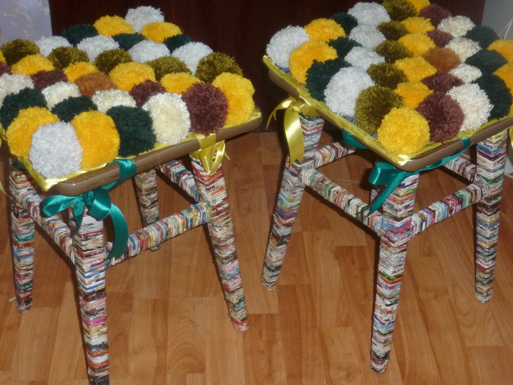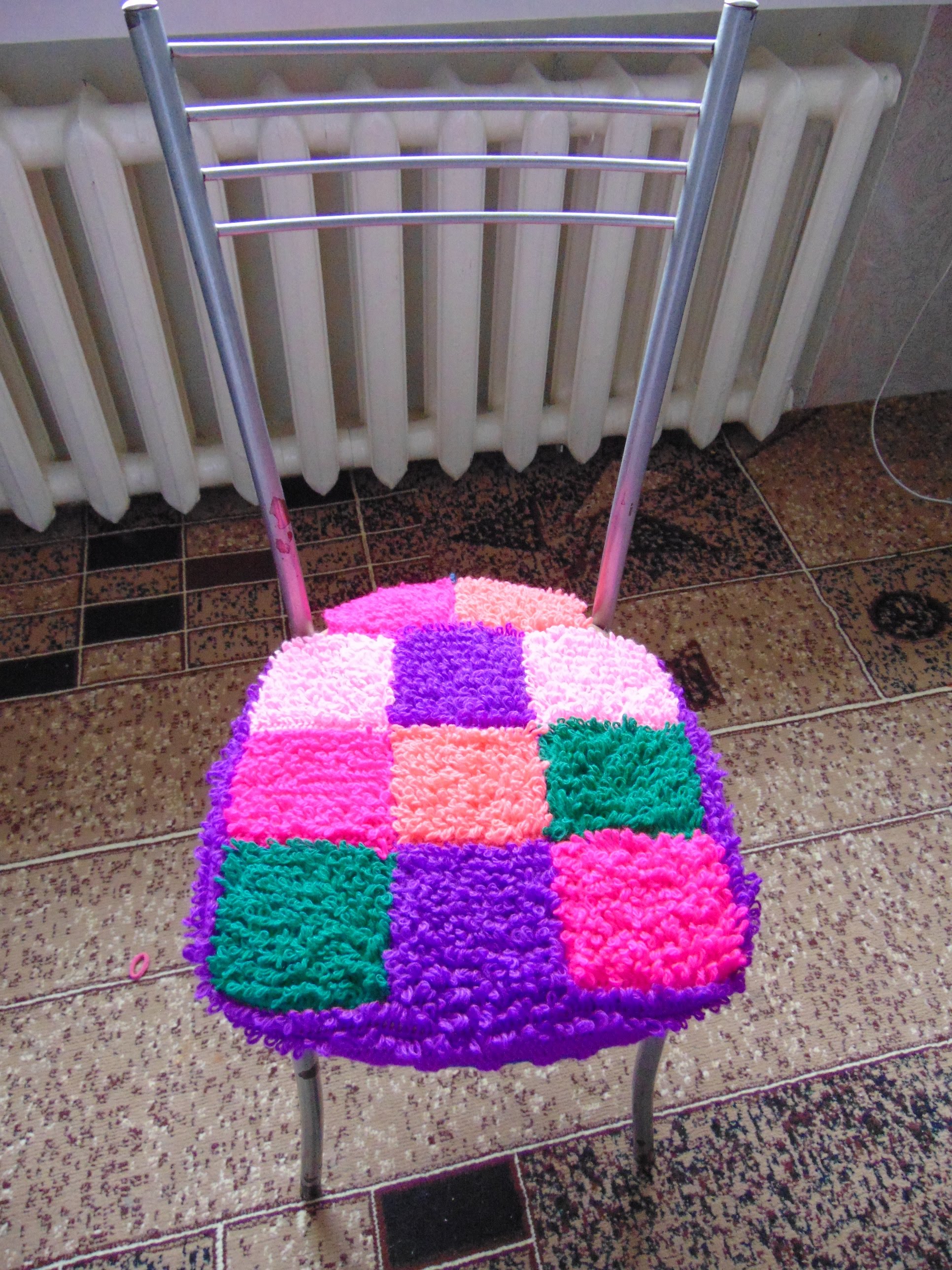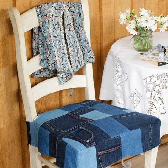 يمكن خياطة الوسائد من قماش جديد أو إعطاء فرصة لسجادة قديمة ، من كنزة محبوكة وسترة. يمكن وضع غطاء على البراز أو مقعد الكرسي ، وتريكو.
