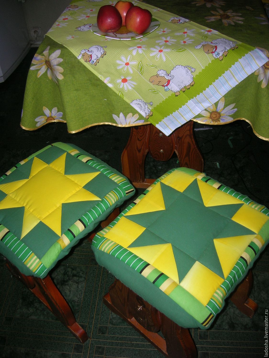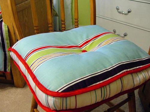 الوسائد "افعلها بنفسك" على الكرسي لن تؤدي فقط إلى "تلوين" المطبخ ، المنزل الريفي بألوان الفرح والدفء ، ولكنه أيضًا هدية رائعة للأصدقاء والمعارف.