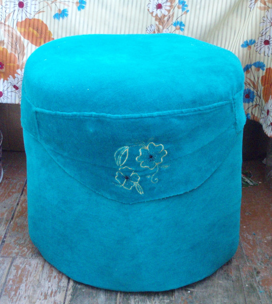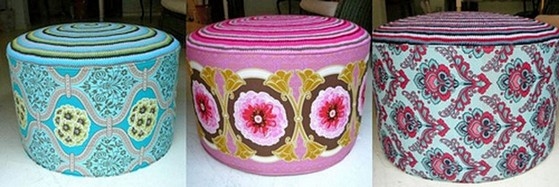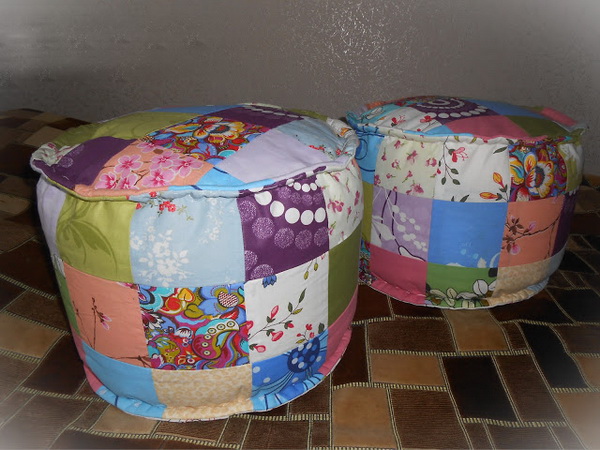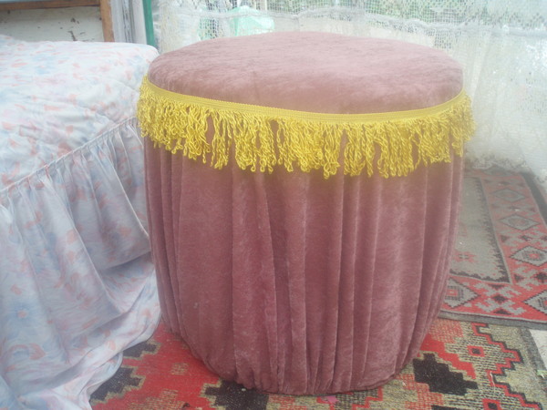 يمكنك تزيين المنتج بطرق مختلفة. على سبيل المثال ، الكشكشة. خياطة على الكشكشة تحتاج إلى دائرة. سيكون أنيق جدا. سوف يتناسب هذا البراز المبطّن بشكل مثالي مع الحضانة. سيكون الحل الممتاز هو استخدام سراويل الجينز القديمة والتنانير.