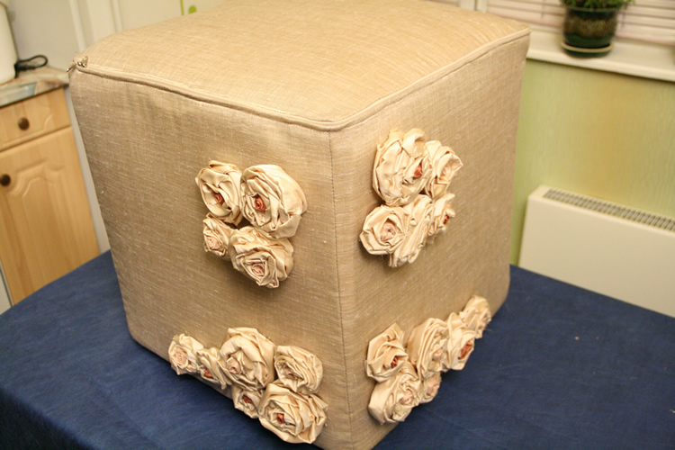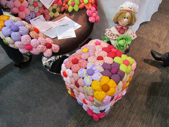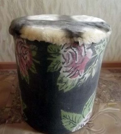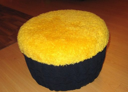 أيضا زخرفة رائعة ستكون شرائط الساتان الملونة. كيف بالضبط استخدامها يعتمد فقط على خيالك. فو الفراء يمكن تزيين pouf. يمكن قطع قطعة من الفراء على شكل دائرة ، تعلق على المقعد.