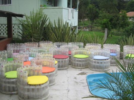 Pouf تفعل ذلك بنفسك من زجاجة بلاستيكية كبيرة من 20 لترا