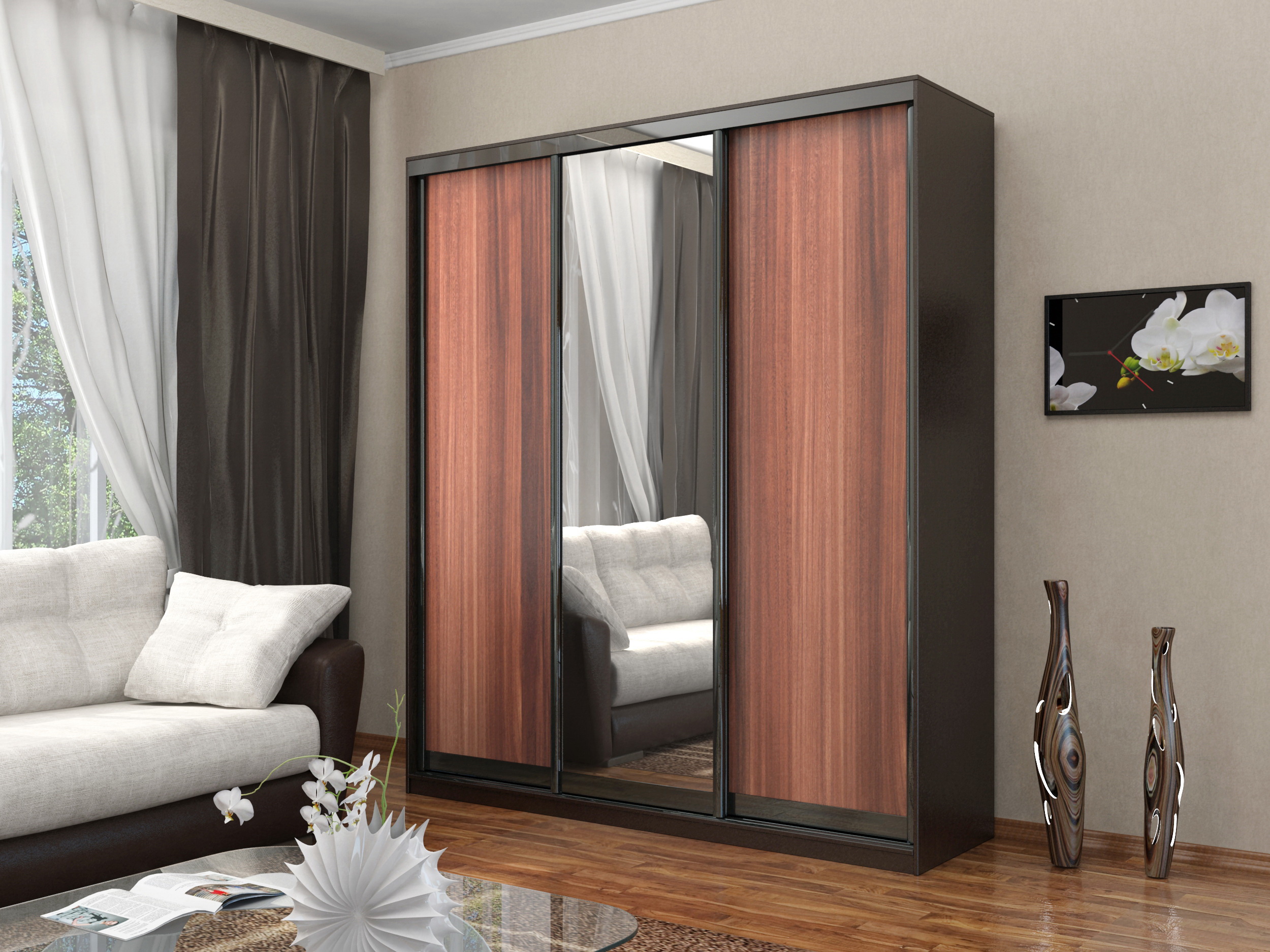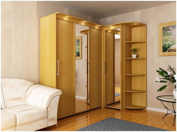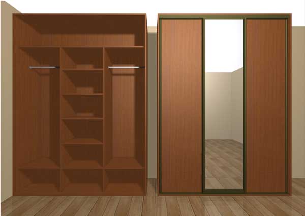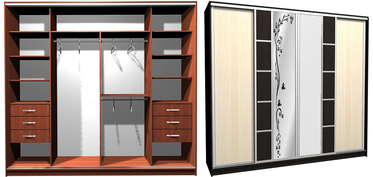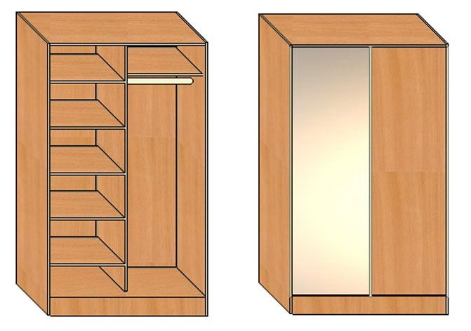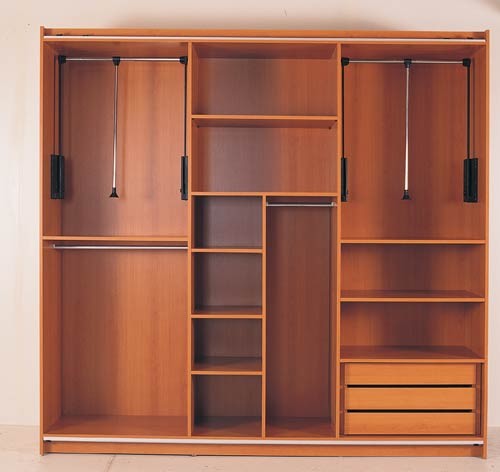 تنقسم خزانة الملابس المنزلقة إلى أقسام ، أدراج ، أرفف ومليئة بالأشياء بشكل غير متساو. تحت تأثير مقصورة تحميل خزانة يمكن أن تكون مشوهة. لمنع ذلك ، بالإضافة إلى الجدار الخلفي ، يمكن توفير أضلاع صلابة خاصة بالداخل.