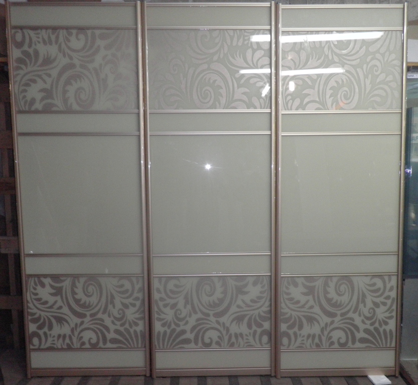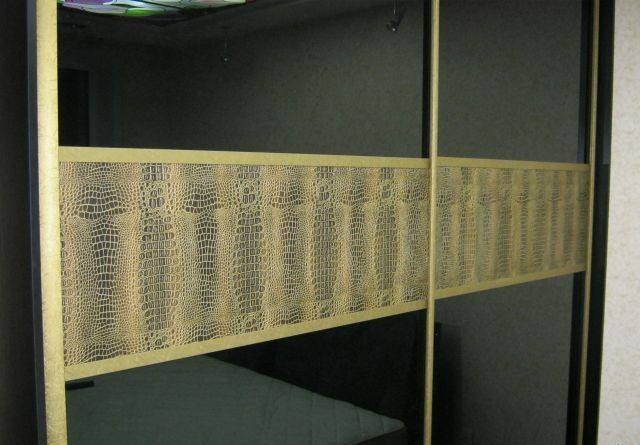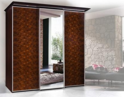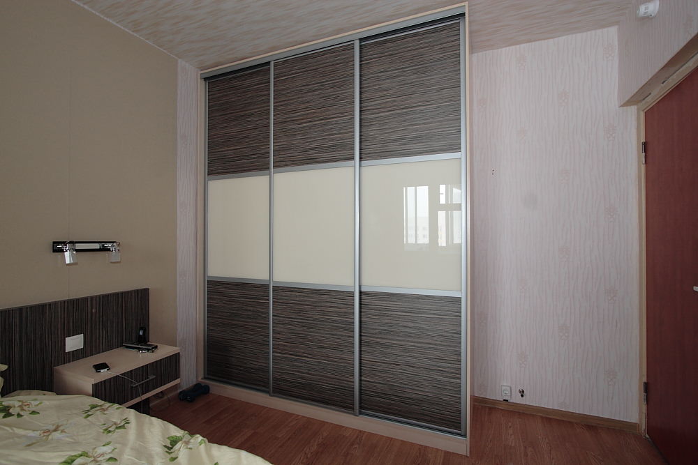 نسيت أن أذكر واجهات مجتمعة. يمكنهم الجمع بين اللوح مع الزجاج ، المرآة واللمعان. هذه الخيارات مناسبة بشكل أفضل للخزانات ذات الأبواب الثلاثة.