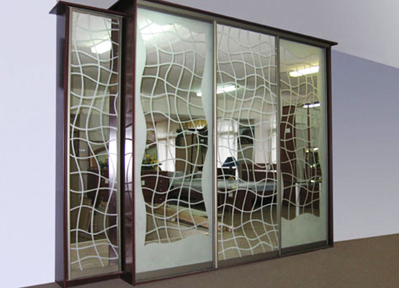 - زخرفة الزجاج أو المرآة.آلة السفع الرملي على الزجاج الملون تضع صورًا مختلفة. لا يتم مسح هذا النمط ، ويمكن غسله بمختلف منظفات الزجاج. سيكون المظهر الأصلي للواجهة مرآة محفورة - يتم تطبيق نمط غير لامع على السطح ، مما يمنح الداخل مظهرًا استثنائيًا.