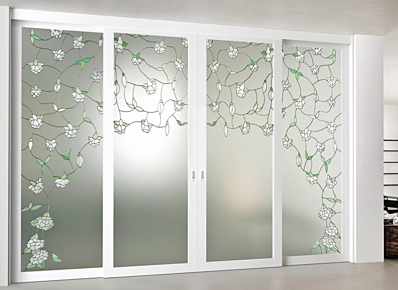 ملصقات الفينيل أو فيلم الزجاج الملون - شيء يمكن القيام به في وقت قصير ، دون أي جهد ، دون امتلاك معرفة خاصة. هذا تحظى بشعبية كبيرة. للواجهات مع مرآة ويتم استخدام حصيرة الطائرة الزجاجية. وهي مصنوعة من معجون خاص. يتم تطبيق استنسل على الطائرة ، يتم تطبيق عجينة مع ملعقة مطاطية. لفترة من الوقت ، أعط الجافة.