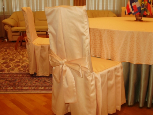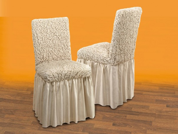 مجموعة متنوعة أخرى - الأغطية الفاخرة. لديهم أنيقة خاصة. التشطيبات الزخرفية على شكل طيات ، والزهور الاصطناعية ، والستائر على الحواف والجزء السفلي ، والتي تغطي تماما أرجل الكراسي ، تنطبق على الخيارات الفاخرة. يتميز الديكور بالشفرات المسطّرة. هذا الخياطة من الأغطية هو أكثر ملاءمة للمناسبات الرسمية بشكل خاص.