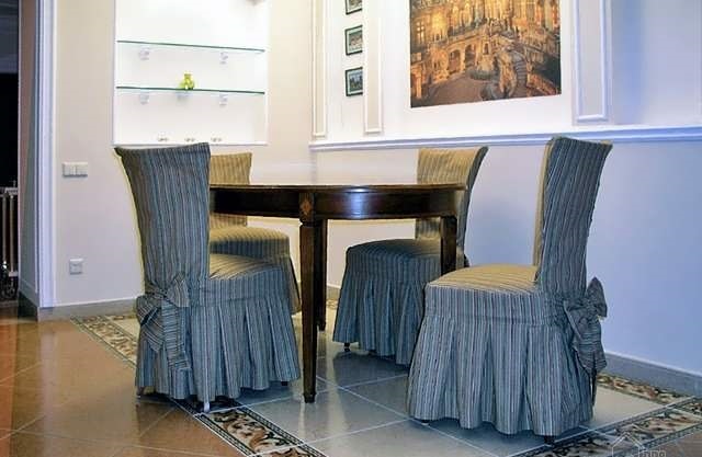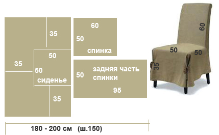 في بعض الأحيان ، حسب طول التنورة والعناصر الزخرفية الأخرى (الطيات ، الكشكشة ، الأقواس ، إلخ) ، تحتاج إلى شراء ما يصل إلى مترين من القماش وأكثر من ذلك لكرسي واحد.